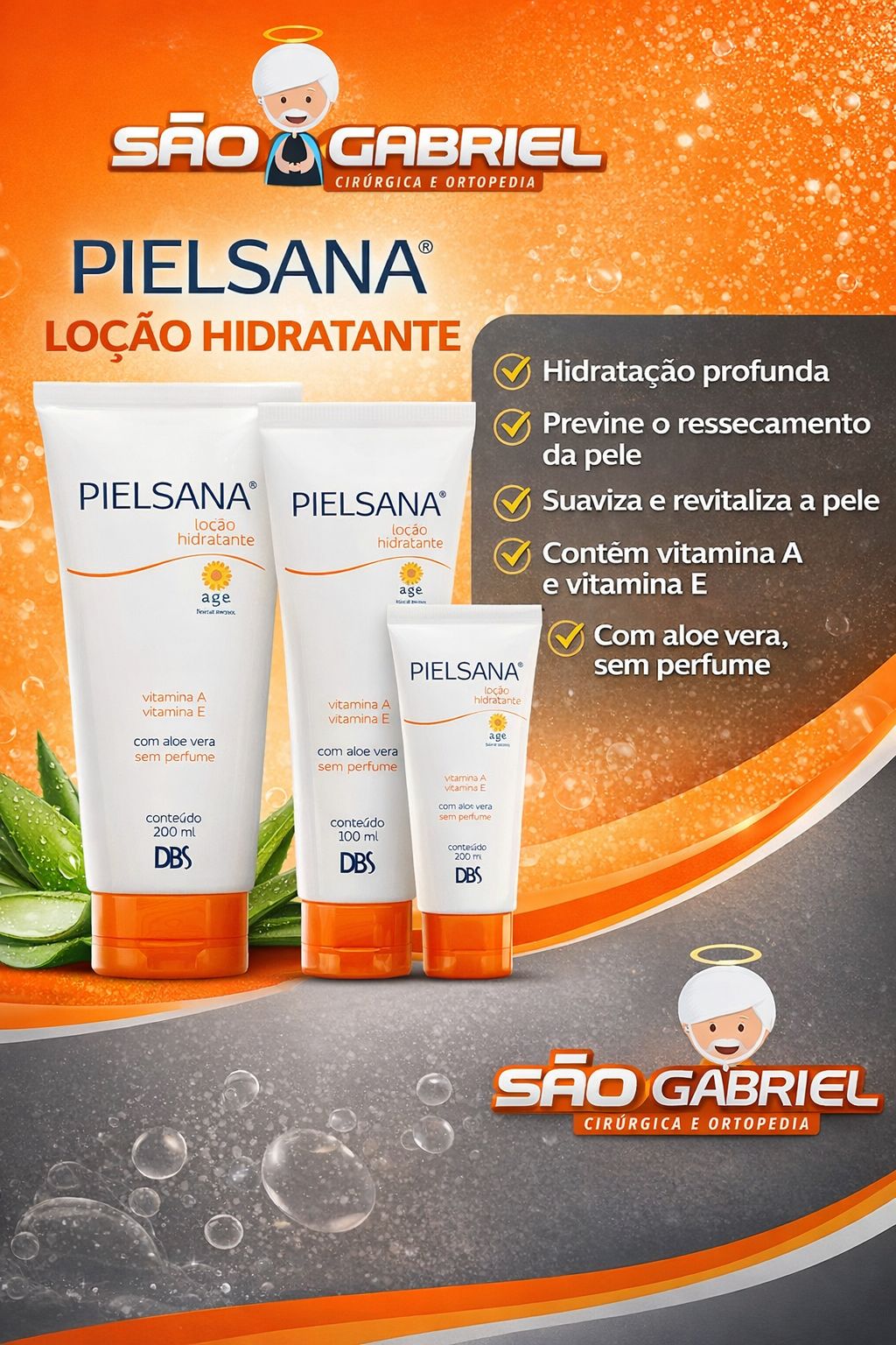 Pielsana Loção Hidratante é um produto a base de AGE (Ácidos Graxos Essenciais), Vitaminas A e E, Uréia, D-Pantenol e Aloe Vera que hidrata e revitaliza a pele. Pielsana Loção Hidrata e mantém o equilíbrio hídrico natural da pele, melhorando a elasticidade dérmica.