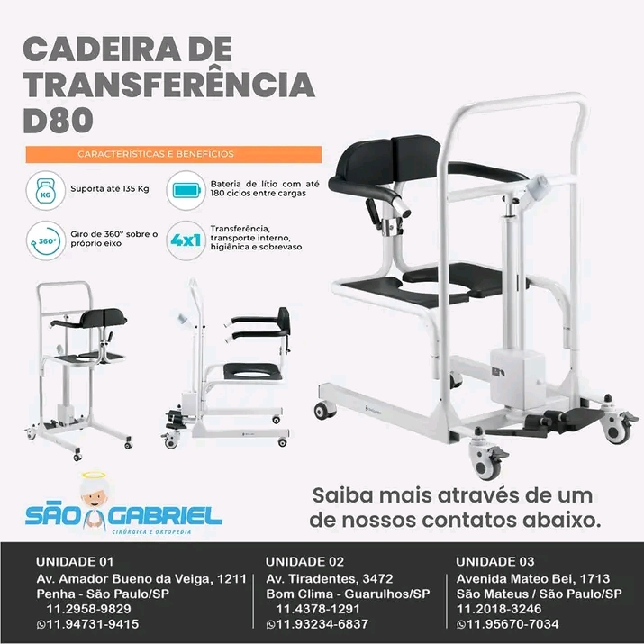 4 em 1 : Cadeira de Transferência, transporte interno, higiênica e sobre vaso.