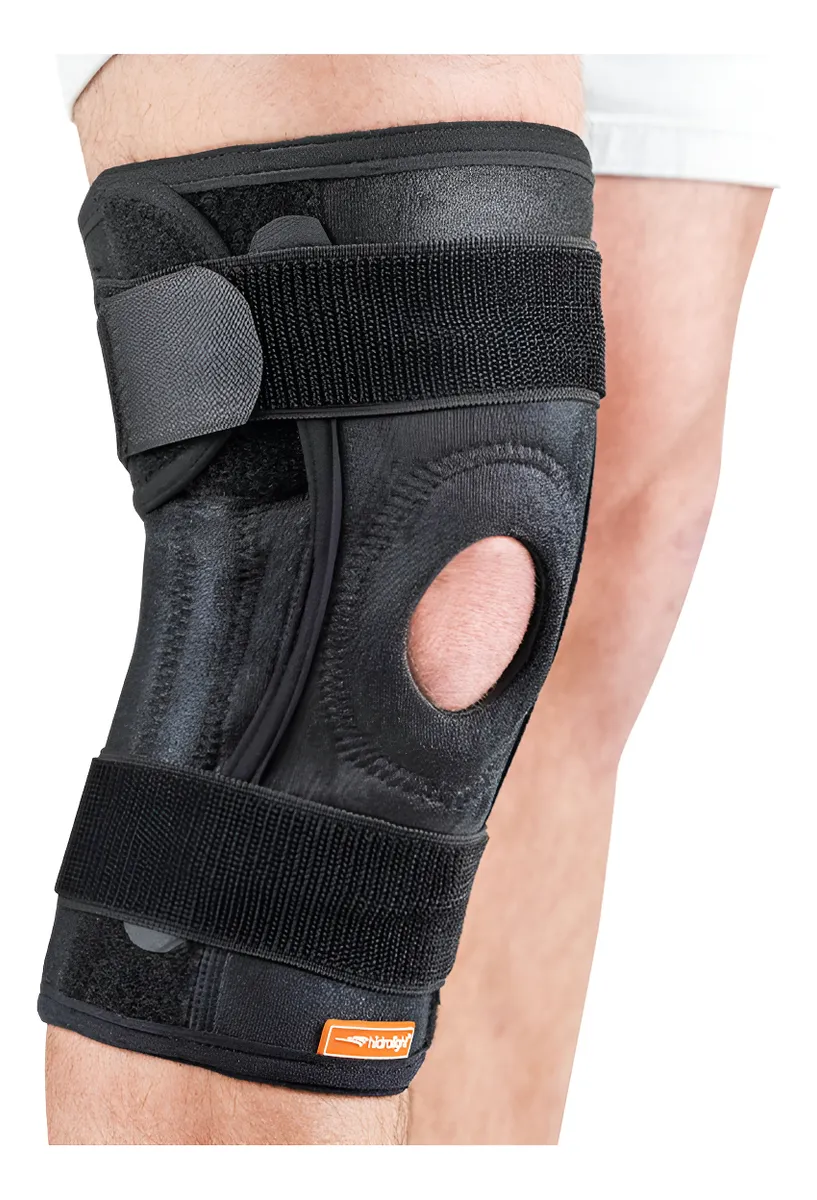 A Joelheira Articulada Relieve Ortopédica Hidrolight é projetada para oferecer compressão e posicionamento anatômico na região da patela, proporcionando alívio da tensão no tendão patelar.