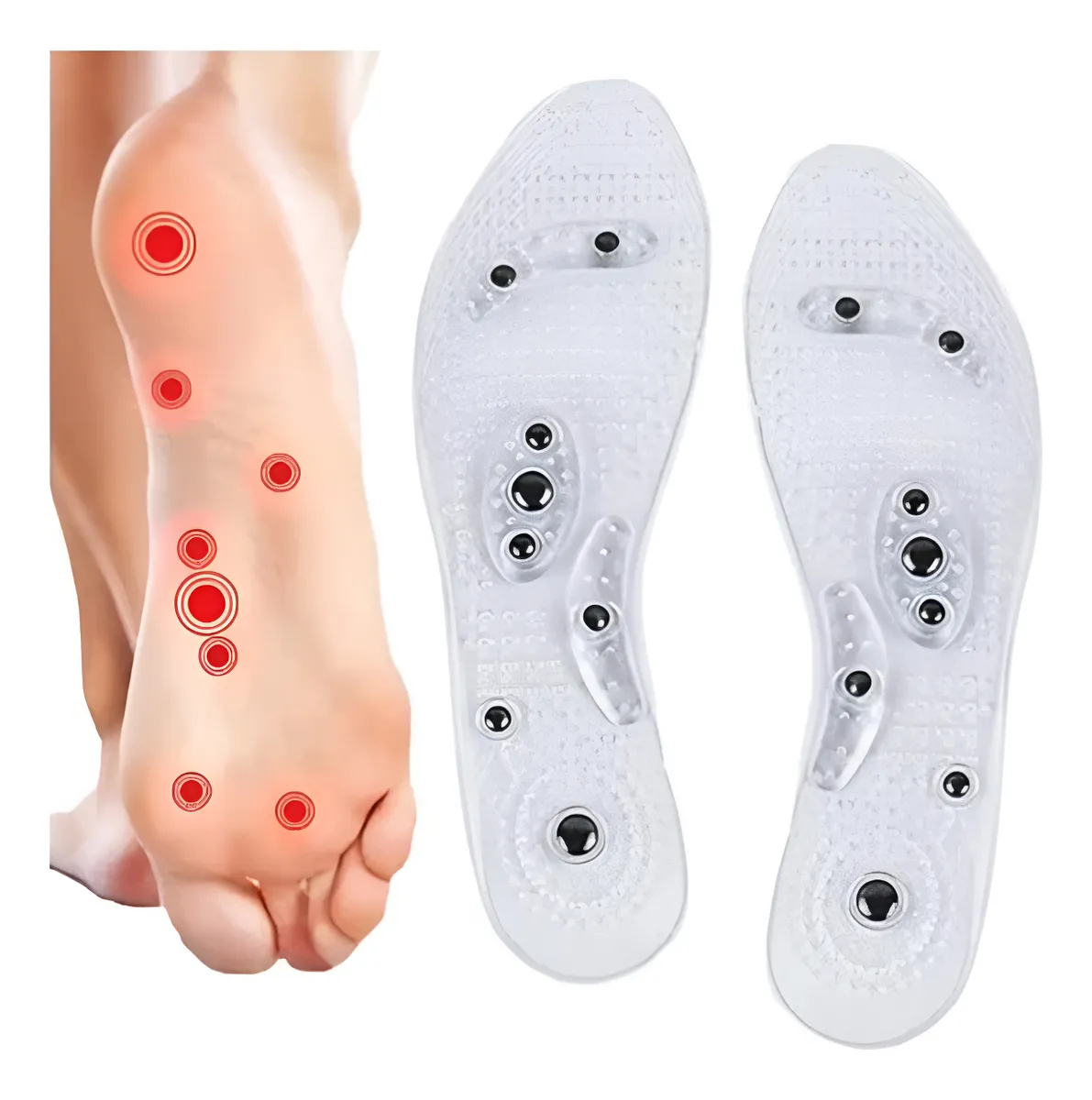Estímulo terapêutico com magnetos: ativa pontos de pressão plantar, auxiliando na circulação e no alívio de dores.
