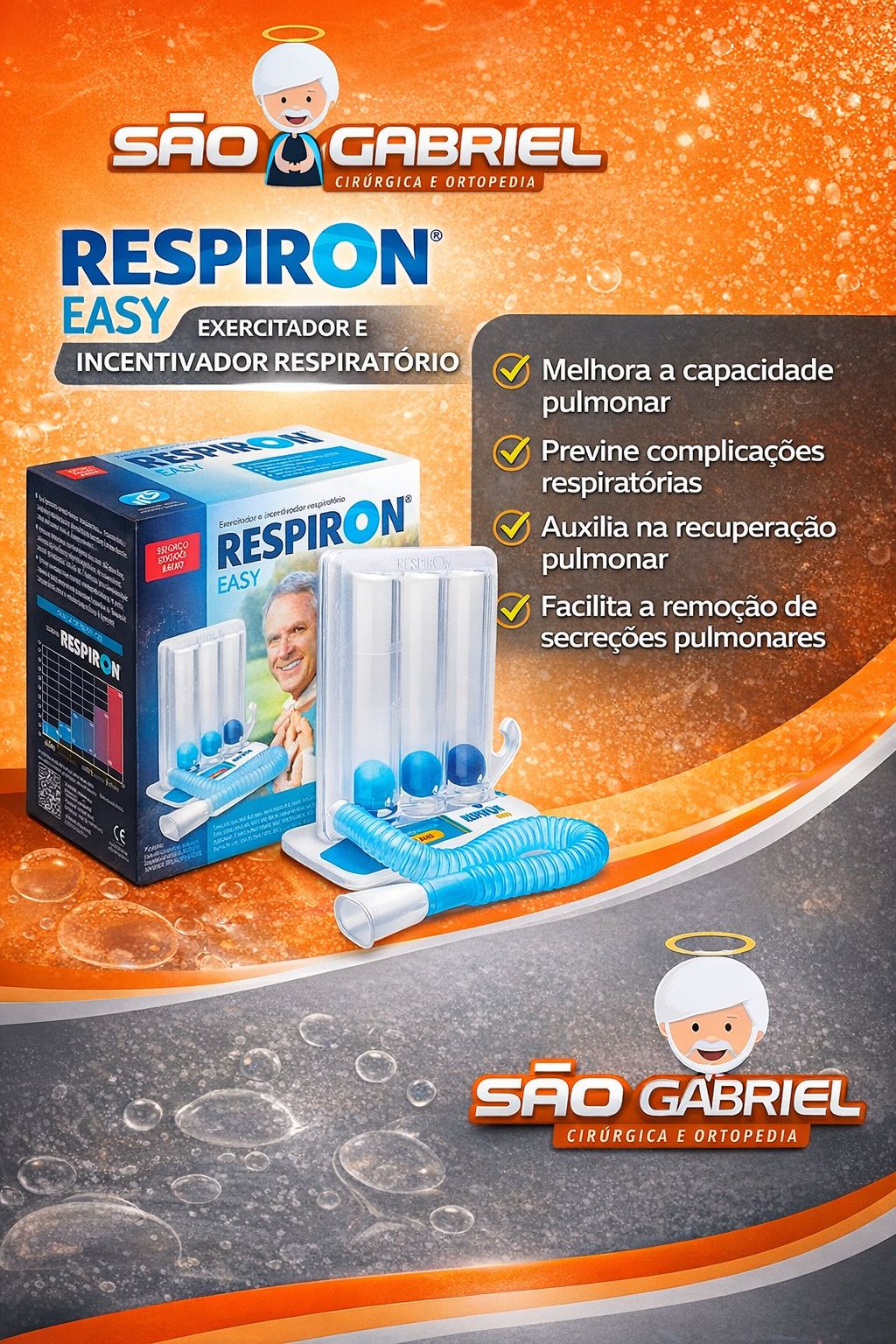 Indicado para prevenção e combate de atelectasias pulmonares e a iniciação do condicionamento respiratório de crianças, idosos, pacientes acamados e mais debilitados.Respiron EasyPrincipais